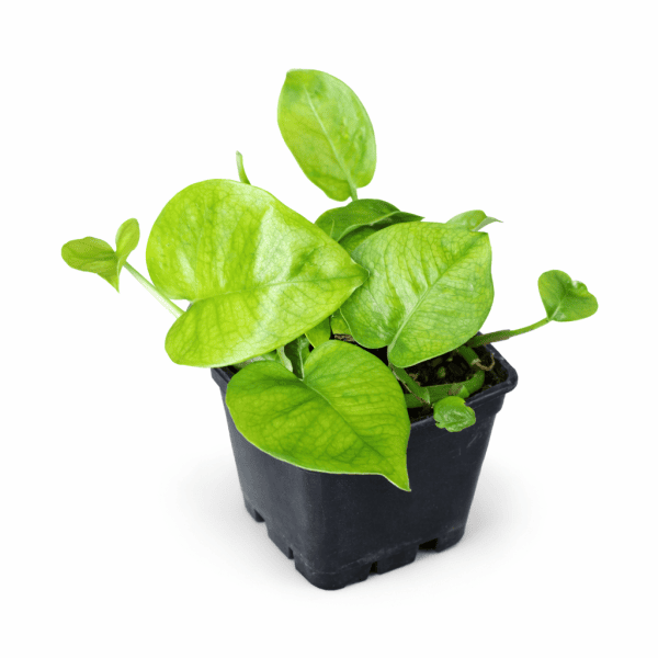 Botánicamente es Epipremnum aureum, la misma especie que el pothos dorado, el marble queen o el neon pothos, con toda la robustez y facilidad de cultivo que caracteriza al género. Es trepador o colgante según el soporte disponible, con hojas acorazonadas y lisas de textura brillante. Cultivado en vertical —sobre un tutor o pared— las hojas ganan tamaño con la madurez; en colgante produce largas guías que pueden superar el metro de longitud.