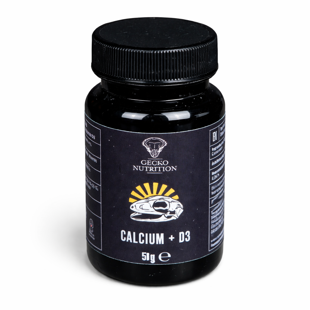 GECKO NUTRITION Calcium + D3 es un suplemento de calcio muy eficaz enriquecido con vitamina D3, formulado para prevenir y compensar deficiencias de calcio y reducir el riesgo de enfermedades secundarias asociadas, como raquitismo o deformidades óseas. Su uso regular ayuda a mantener una estructura óptima del esqueleto, favorece el mantenimiento óseo y apoya un metabolismo saludable del calcio en reptiles.