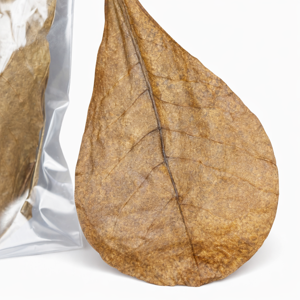 Las hojas de almendro indio (Terminalia catappa) son un acondicionador de agua natural muy utilizado en acuariofilia y cría por sus compuestos vegetales (taninos y otros) que ayudan a crear un entorno más “seguro” y estable. En el caso de la cría de anfibios, son una ayuda extra por sus propiedades antibacterianas, antifúngicas y por su aporte a la salud general de los renacuajos, especialmente en etapas sensibles.