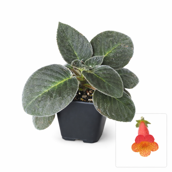 Esta variedad destaca por sus flores tubulares de tonos rojizos y rosados con patrones moteados, que contrastan con sus hojas verdes y suavemente vellosas. Es una planta perfecta para quienes buscan una especie diferente, llamativa y relativamente fácil de mantener en interior.
