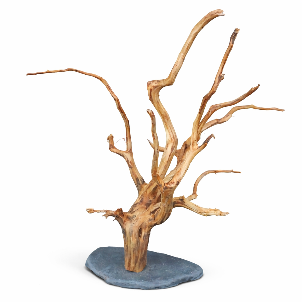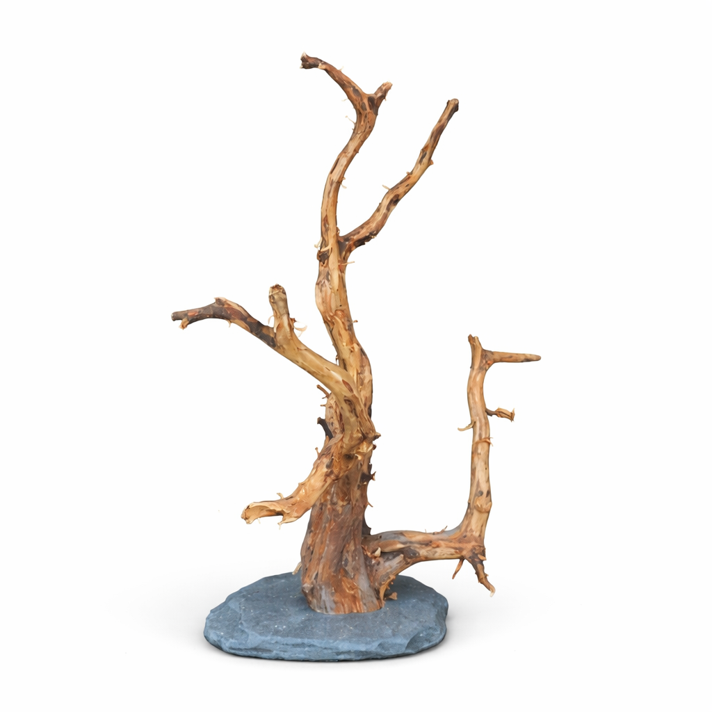 La Rasamala con base de piedra es una pieza de hardscape pensada para quienes quieren añadir volumen y estructura en el terrario de forma estable y segura. Se trata de trozos de madera fina y resistente fijados a una base de piedra más pesada, lo que permite semienterrarla en el sustrato y mantener la pieza firme incluso en zonas donde otras maderas tienden a moverse, volcar o no se pueden colocar con estabilidad.